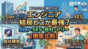 この記事では、AI(人工知能)やLLM(大規模言語モデル)の普及により激変するIT業界を背景に、「やめとけ」と言われる構造的な理由から、逆にSES環境を利用して圧倒的に成長する「勝ち組」の特徴、そして優良企業の見極め方まで徹底解説します。